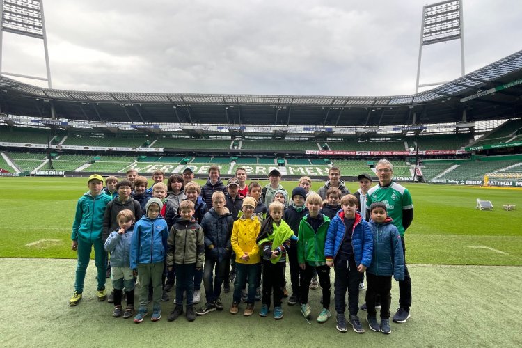 Ende April schenkte uns der Arbeitskreis Bremer Archive eine Führung durch das Weserstadion. Nun standen die Jungs ganz berührt und ergriffen vor dem heiligen Rasen: Erlaubt war „anfassen, aber nicht betreten“. Gar nicht so einfach, sich daran zu halten, wenn man für Fußball fast genauso viel Leidenschaft aufbringt, wie für’s Singen …