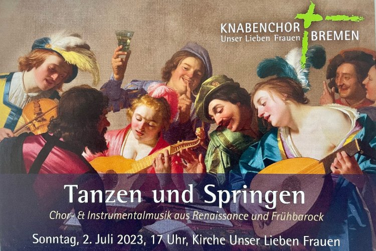 Hans Leo Haßlers (1564-1612) Madrigal „Tanzen und Springen“ ist titelgebend für unser Sommerkonzert am 2. Juli um 17 Uhr, zu dem wir Sie herzlich in unsere Kirche einladen!